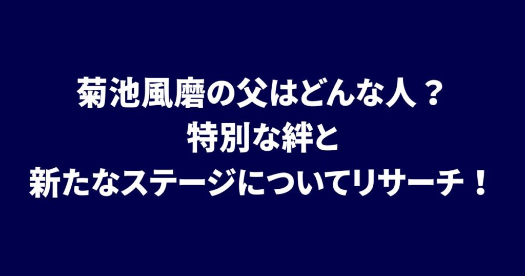菊池風磨の父はどんな人?特別な絆と新たなステージについてリサーチ!