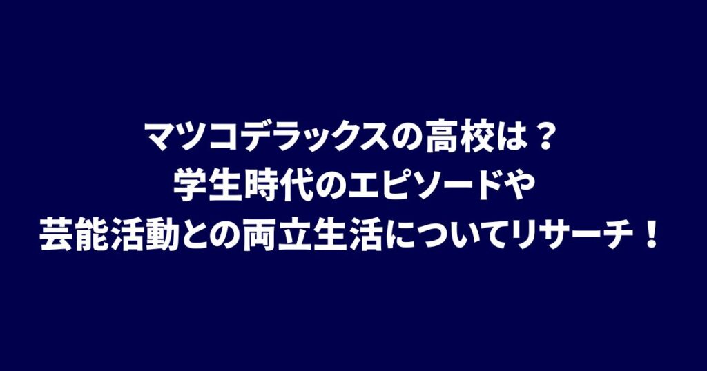マツコ・デラックスさんといえば、鋭い洞察力と毒舌で知られる人気タレントです。 しかし、彼女の学生時代や芸能界デビュー前の生活については、あまり知られていません。 今回は、マツコ・デラックスさんの高校時代や学生時代のエピソード、そして芸能活... -