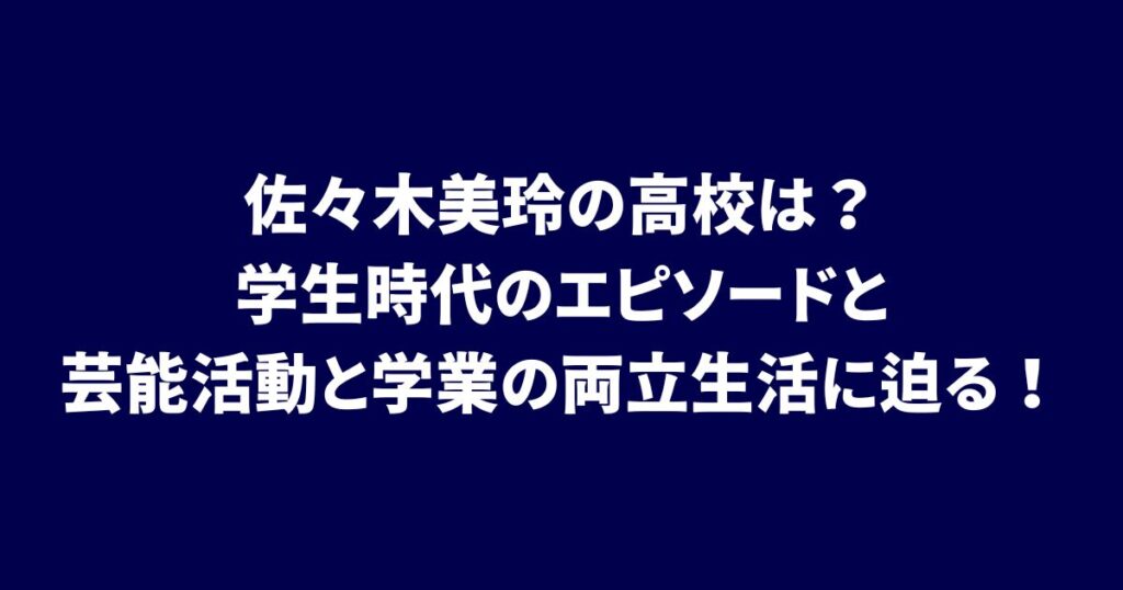 日向坂46のメンバーとして活躍する佐々木美玲さん。 彼女の高校時代や学生時代のエピソード、そして芸能活動と学業の両立生活が気になりますよね。 今回は、佐々木美玲さんの高校生活や学生時代のエピソード、そして芸能活動と学業の両立について詳しく見... -