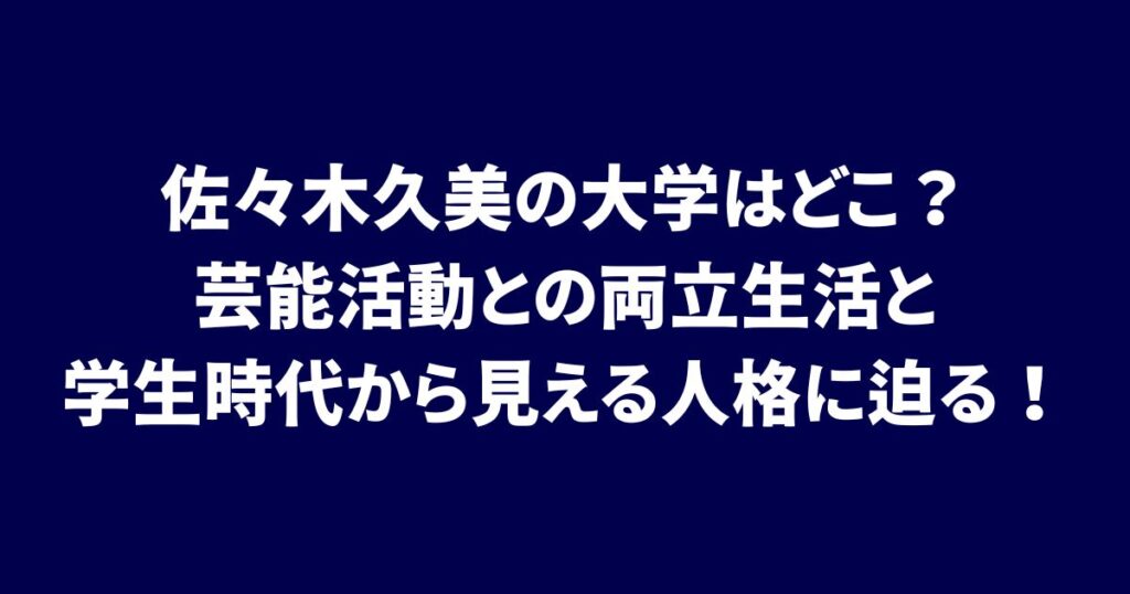 佐々木久美の大学はどこ?芸能活動との両立生活と学生時代から見える人格に迫る!