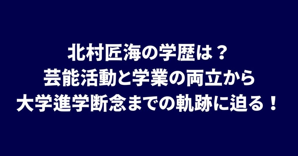 北村匠海の学歴は?芸能活動と学業の両立から大学進学断念までの軌跡に迫る!