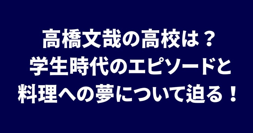 高橋文哉の高校は?学生時代のエピソードと料理への夢について迫る!