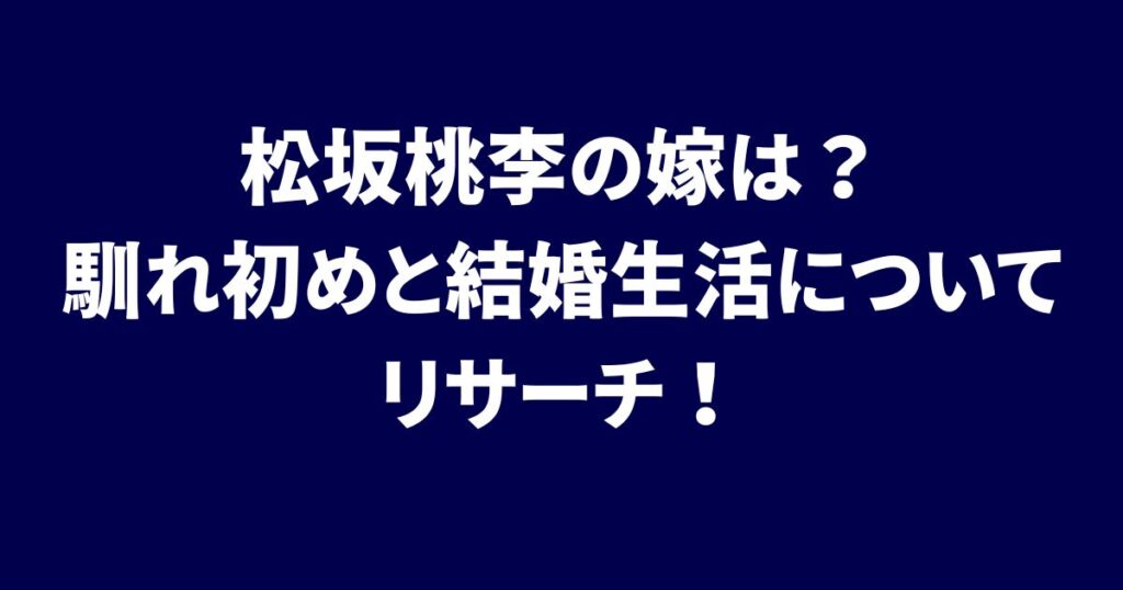 人気俳優の松坂桃李さんの結婚は、多くのファンを驚かせました。 松坂桃李さんの嫁は誰なのか、そして二人の馴れ初めや結婚生活が気になりますよね。 今回は、松坂桃李さんの結婚について詳しくリサーチしてみました。 ぜひ最後までお付き合いください。 ... -