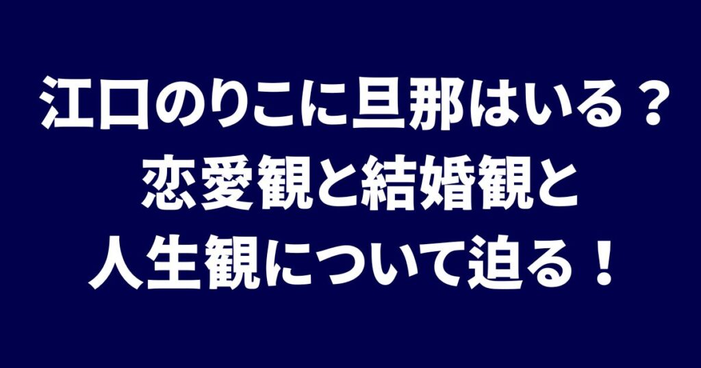 江口のりこに旦那はいる?恋愛観と結婚観と人生観について迫る!