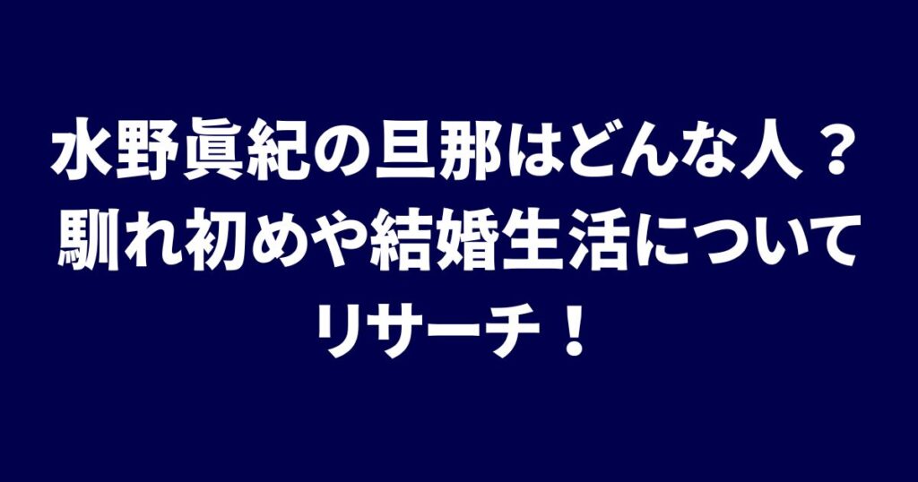 女優として長年活躍し、多くのファンに愛されている水野真紀さん。 彼女の結婚生活や旦那さんについて気になっている方も多いのではないでしょうか? 今回は、水野真紀さんの旦那さんについて、その人物像や馴れ初め、そして結婚生活の様子を詳しく調べて... -