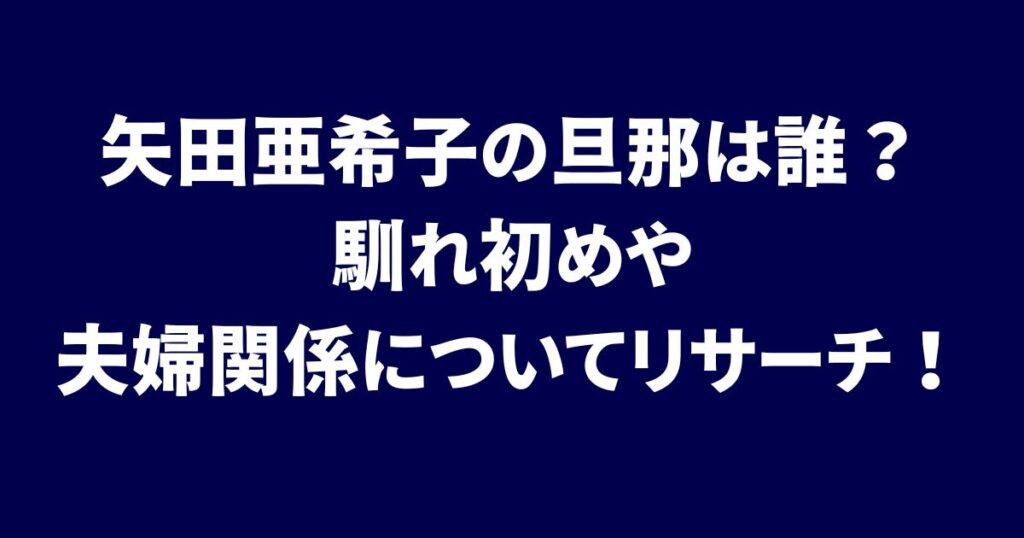 女優として活躍する矢田亜希子さん。 彼女の結婚生活や元夫について気になる方も多いのではないでしょうか? 今回は、矢田亜希子さんの元旦那や馴れ初め、そして夫婦関係について詳しく調べてみました。 矢田さんの波乱万丈な結婚生活と、現在の状況につい... -